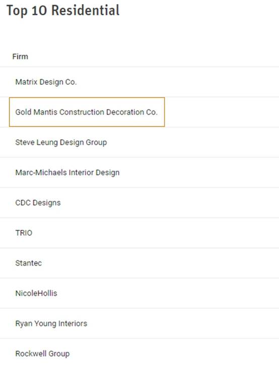"在线影视" 金螳螂荣登全球室内设计商业空间第1名、住宅空间第2名、酒店空间第3名
