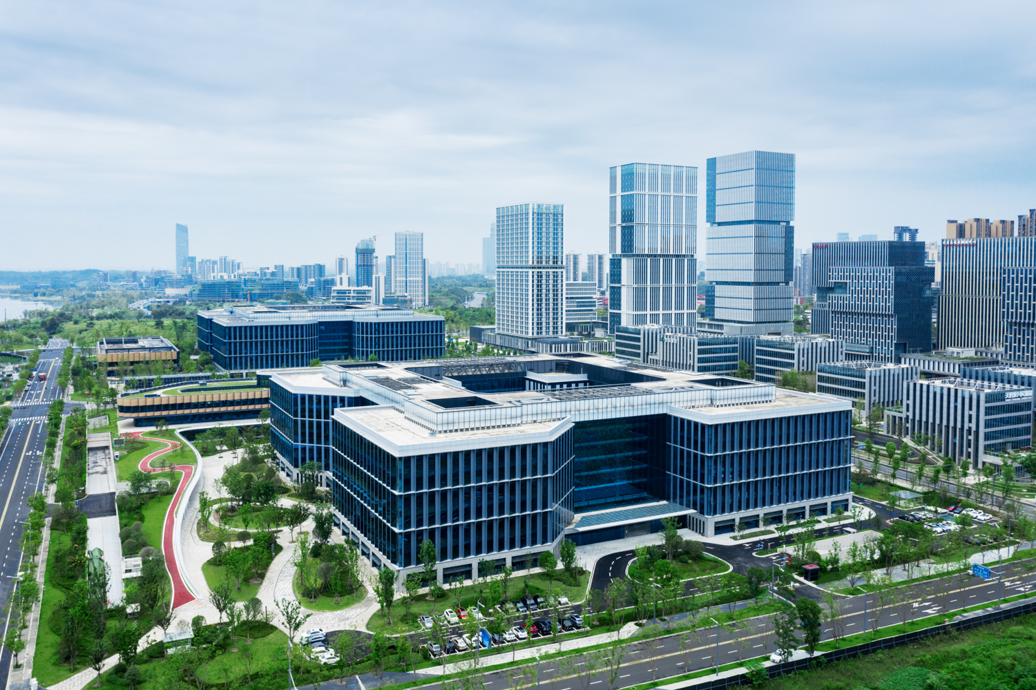 在兴隆湖畔以东,鹿溪河畔拐角,矗立着一座科技园区,是前不久刚开园的海康威视成都科技园,总建筑面积35万平方米 天堂视频在线,可同时满足超万人的研发办公需求,是海康威视单体占地面积最大的研发园区。