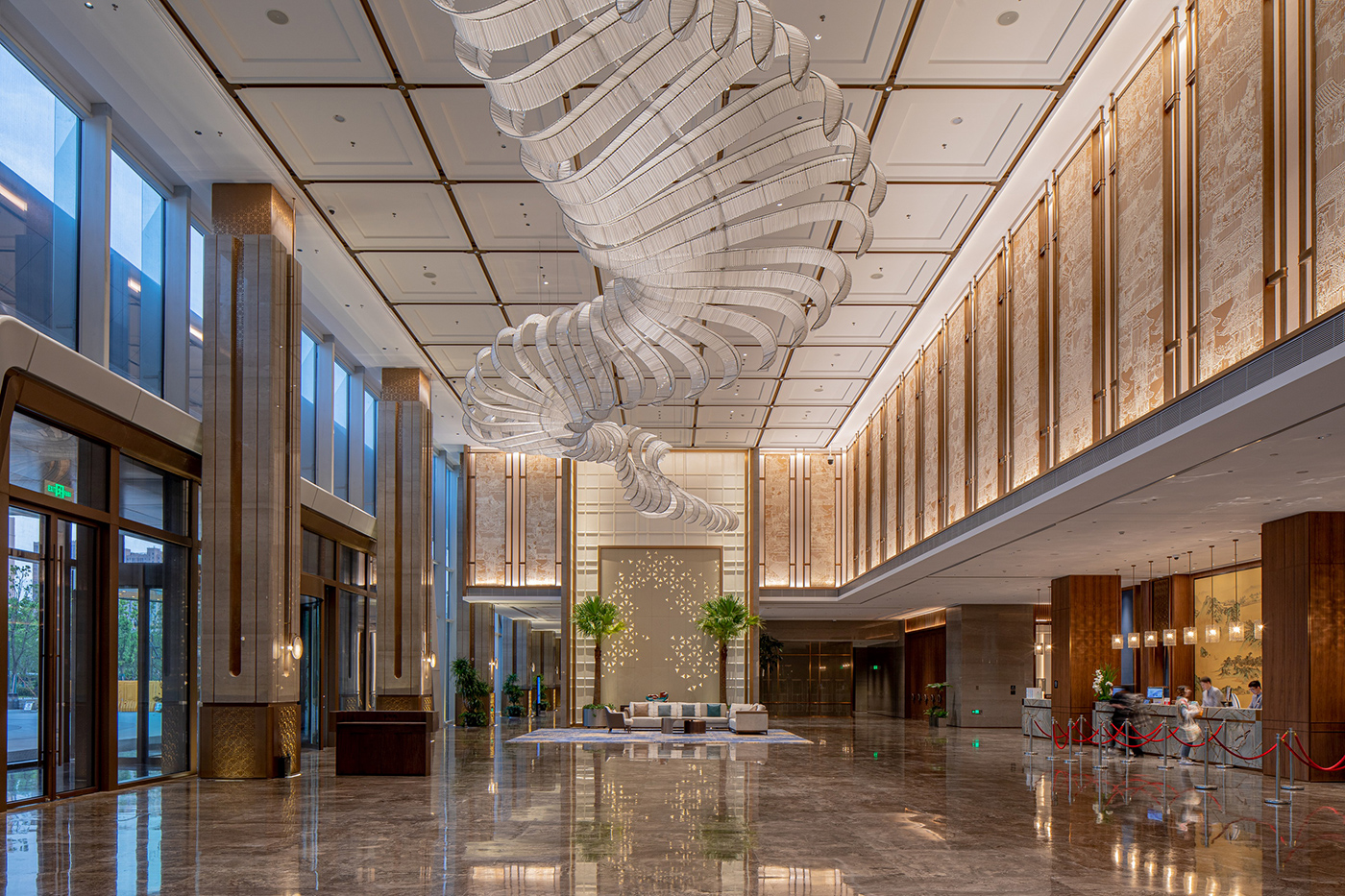 酒店整体建筑俯瞰造型形同汉字“中”,建筑顶部勾勒出高铁形象,完美体现了“以相城梦筑中国梦”的设计理念。