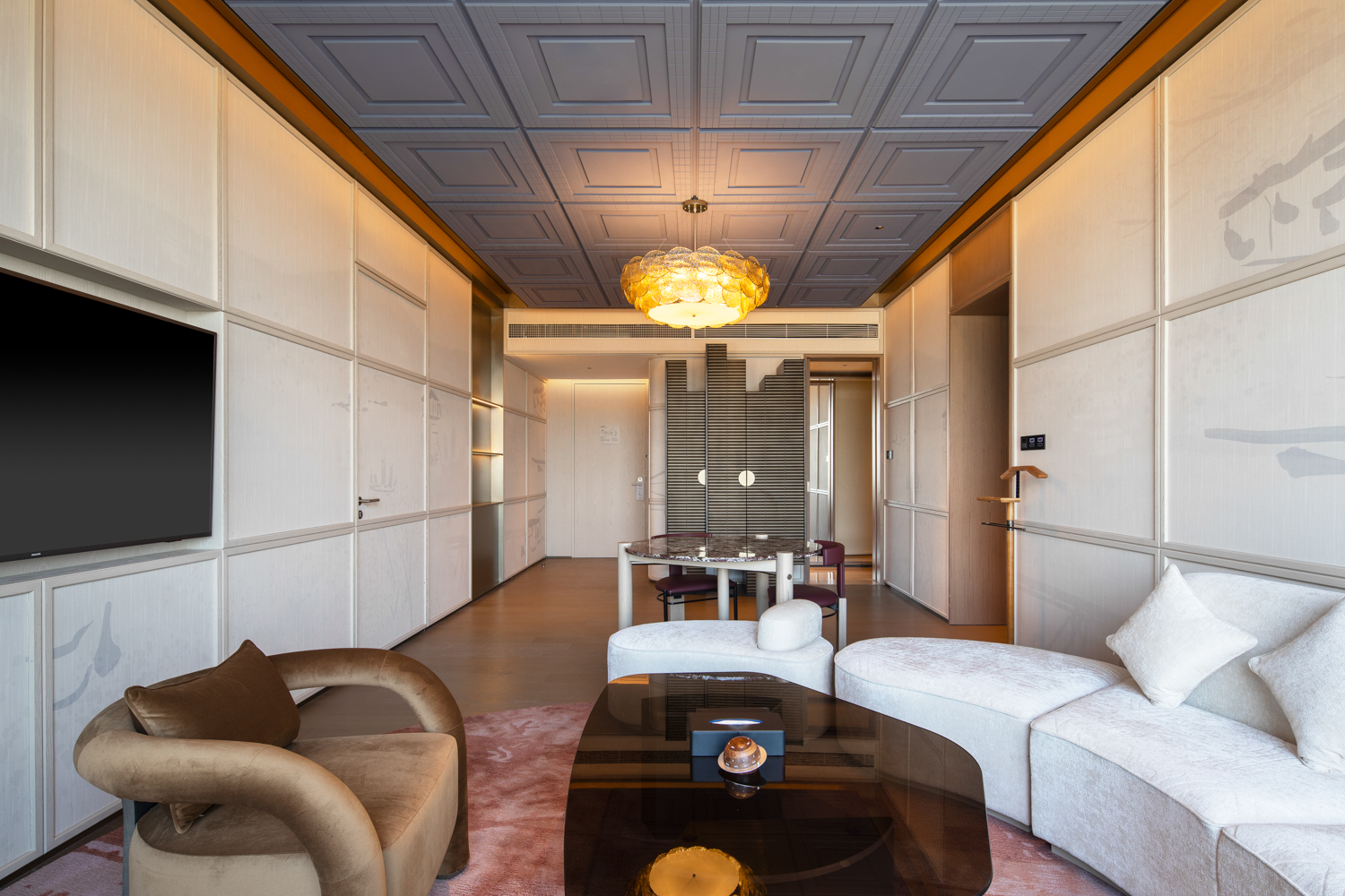 酒店由HBA操刀设计,金螳螂负责整体装饰施工,整个项目巧妙融合了江南韵味和现代工业风格,以自然调色,将太湖倒影,花卉涟漪,渔网帆布等自然人文风物和当地人记忆中的“老面粉厂”等文化遗存微缩成邻间故事脉络,每一处细节都蕴藏着风雅吴地之韵 天堂视频高清
