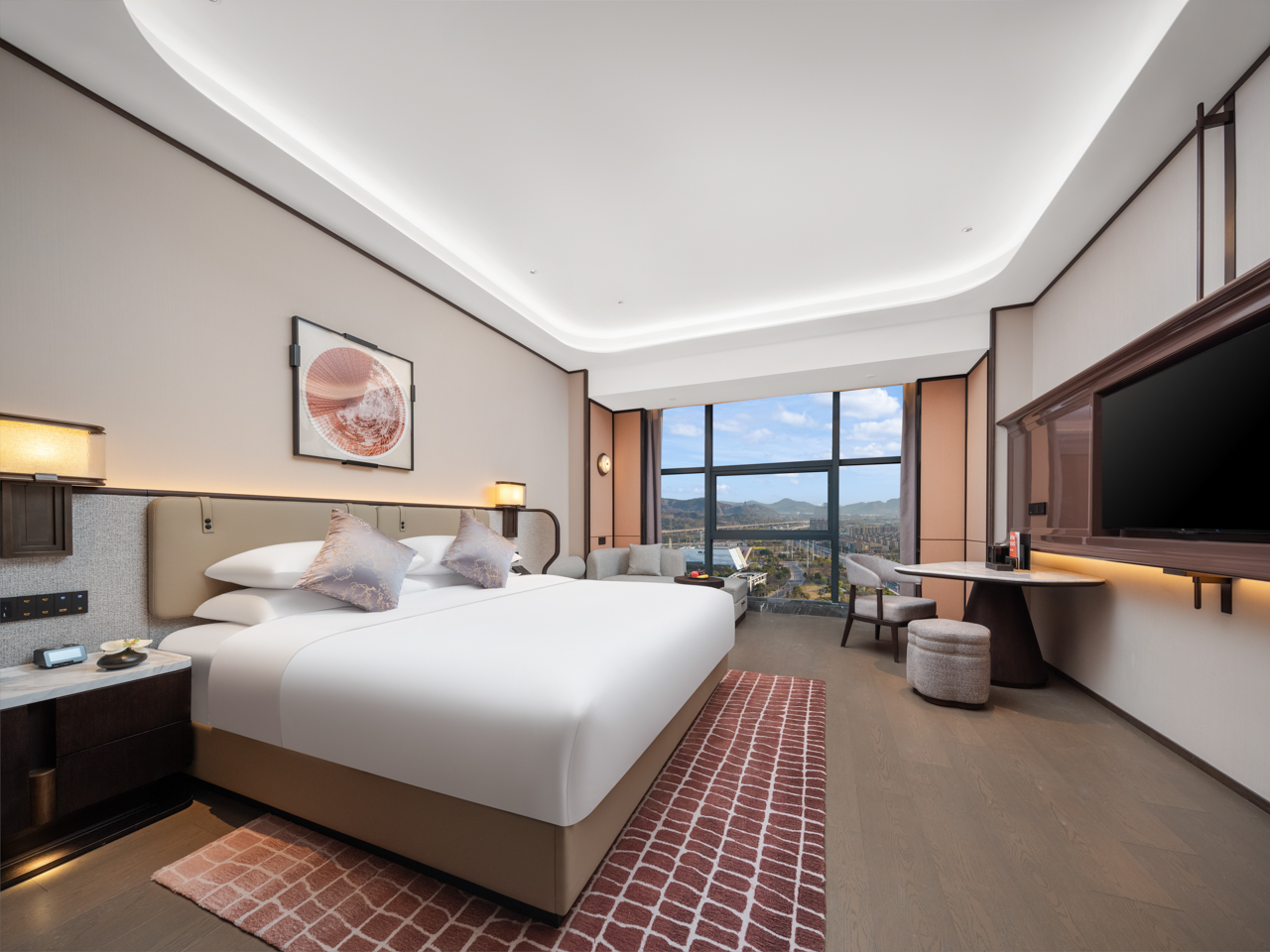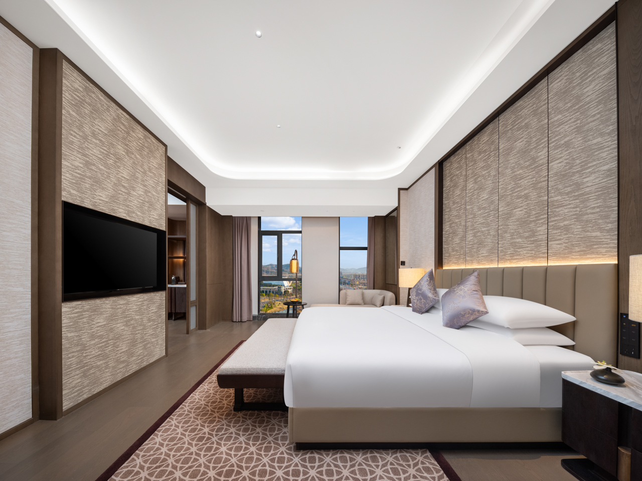 酒店以盛唐风华和诗礼东方的待客之道为灵感,营造庄重典雅的空间;诗礼东方,这四个字如同一扇穿越时光的门,敞开着远古东方文明的绚丽画卷