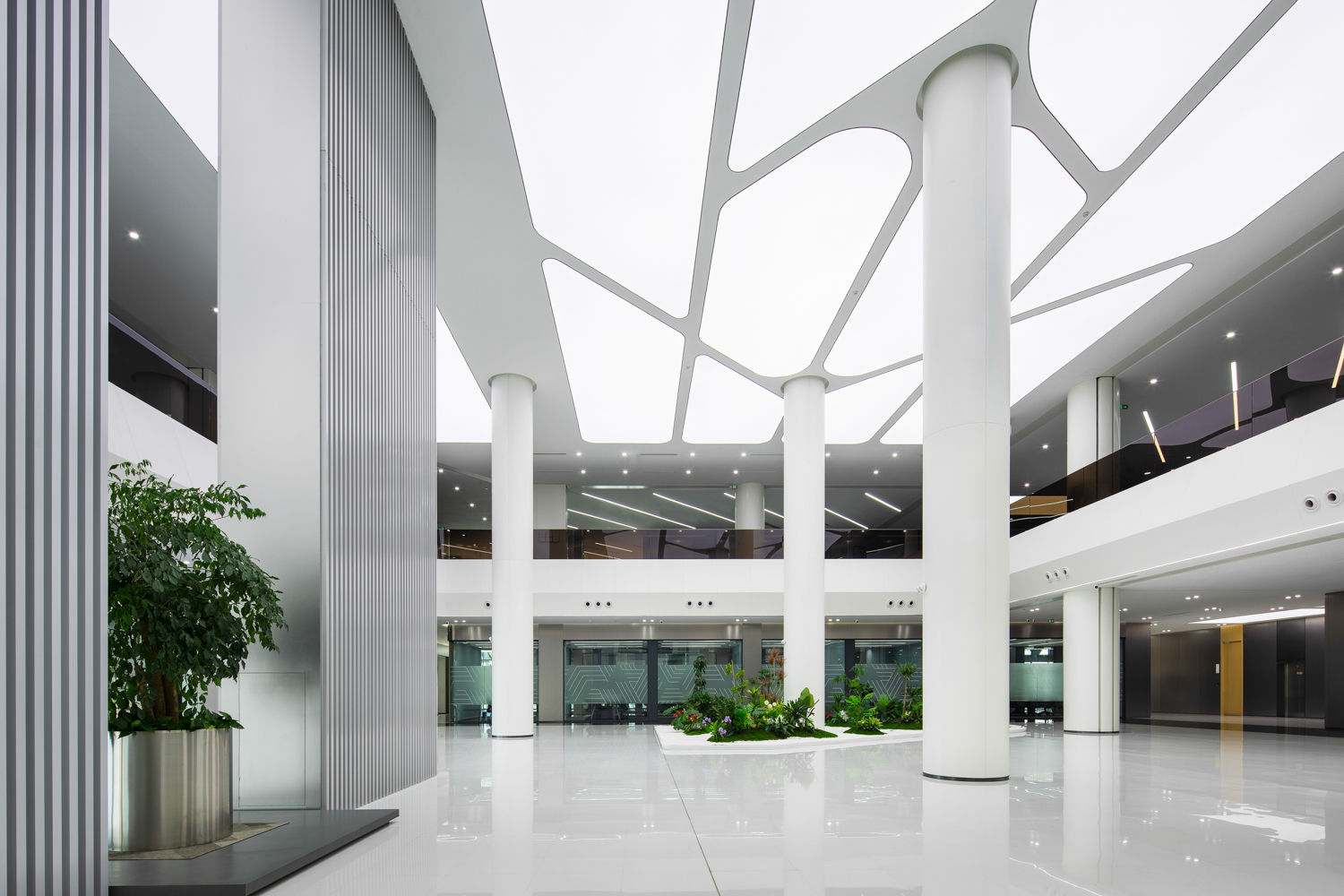 科技感的设计风格延续至室内,“科技静谧,人文温暖”为基调,形成东方智慧 天堂视频免费观看,水绿交融的生态理念,保留了作为科技工厂的先锋设计风格,“四水归堂”的中庭概念进一步延伸,形成视觉通廊。